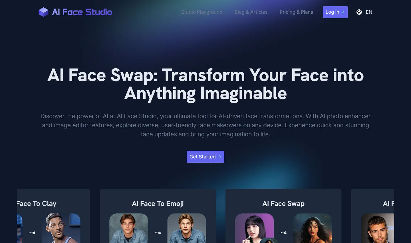 AI Face Studio一个AI驱动面部变换在线平台。通过上传人脸图片转换成多种风格,如换脸、Emoji、3D、像素和游戏角色等等,仅需一键完成